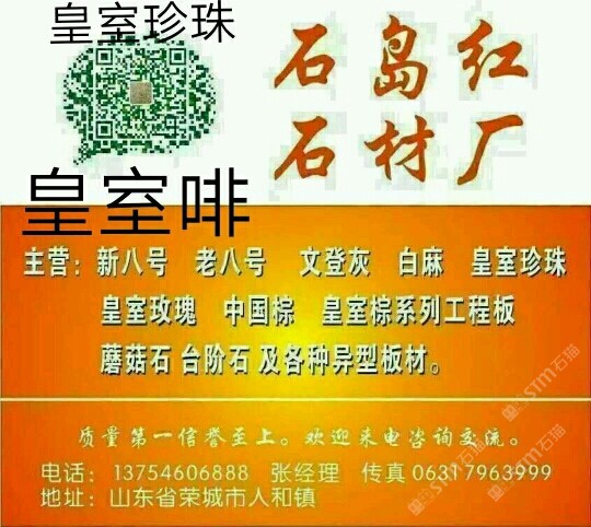 該企業(yè)尚未填寫簡(jiǎn)介,請(qǐng)補(bǔ)充!山東石島紅石材廠主營(yíng) 新八號(hào) 老八號(hào) 文登灰 白麻 皇室珍珠 皇室玫瑰 中國(guó)棕 皇室宗系列工程板 蘑菇石 臺(tái)階石 及各種異型板材。質(zhì)量信譽(yù)至上。歡迎來(lái)電咨詢交流。電話 13754606888 張經(jīng)理 傳真 0631 7963999。 qq 245382641