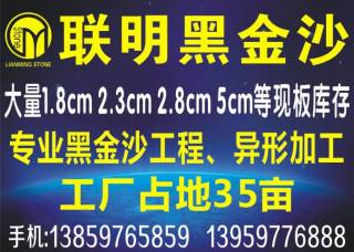 【聯(lián)明?黑金沙】——大工廠的規(guī)模和質量,小廠的價格。兩工廠共占地35左右畝地,一廠為市場部位于水頭鎮(zhèn)下邦工業(yè)區(qū),二廠為工程運營中心位于石井中泰集控區(qū),是一家集礦山、生產、加工為一體化的綜合性專業(yè)化石材工廠,有著十幾年的黑金沙經驗,公司主要經營黑金沙市場板,工程板,黑金沙異型加工。工程案例有:1、上海楊浦區(qū)149項目中船大廈,黑金沙總用量3萬平方;2、蒼南天和家園共3期,黑金沙總用量5萬平方;