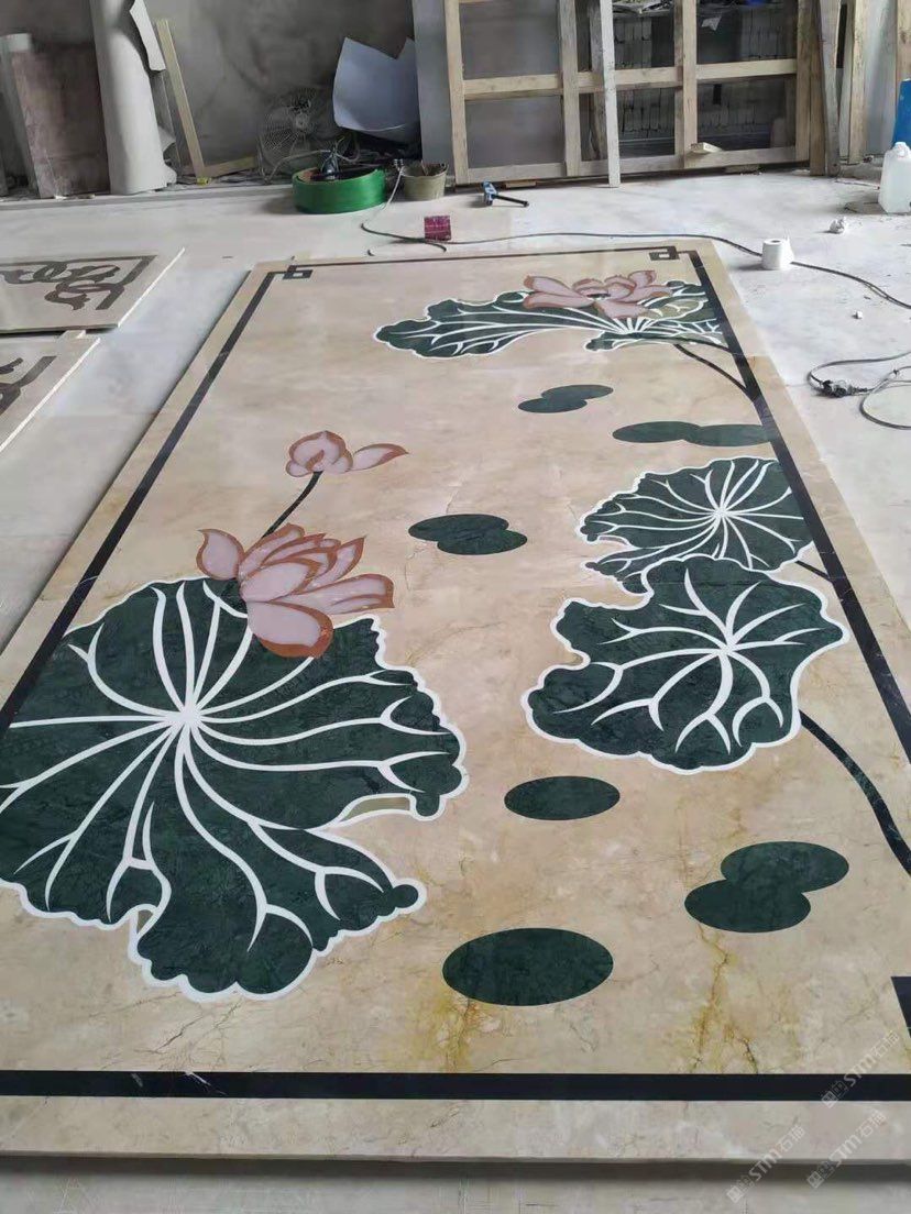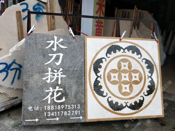 本公司 轉(zhuǎn)營(yíng)大理石(歐亞木紋,藍(lán)冰玉) 水刀拼花 電視背景,特價(jià)石材。