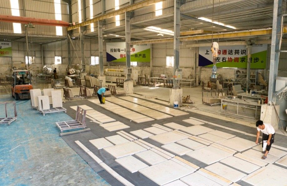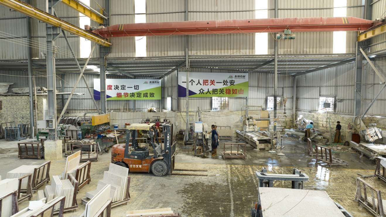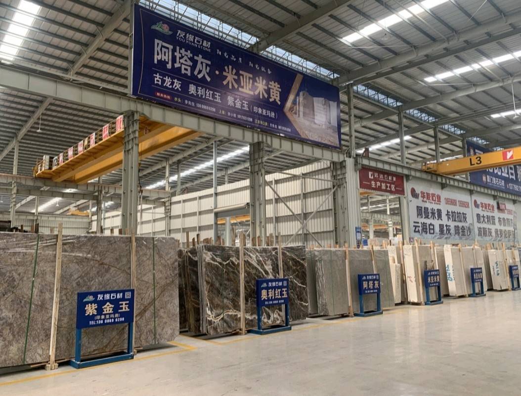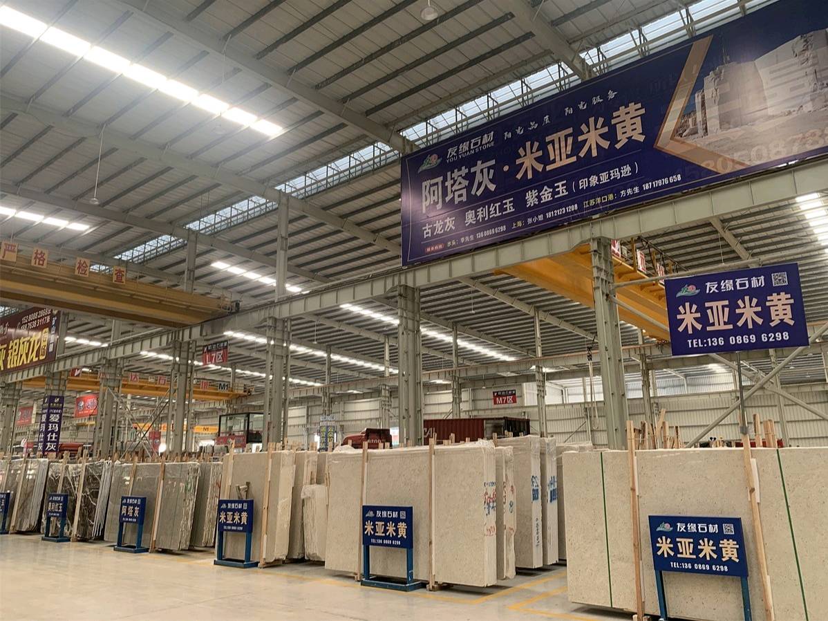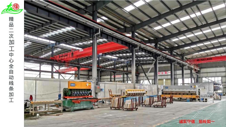 友緣石材精品加工中心、精品倉儲中心位于江蘇省南通市洋口港石材產(chǎn)業(yè)園區(qū),占地面積約28000平方米,生產(chǎn)中心集石材荒料加工,精品大板拋光,工程異形石材加工等一體化生產(chǎn)功能,具有國內(nèi)外先進加工設(shè)備,如鉆石切割機、單邊鋸切割機、繩鋸切割機、全自動板材拋光機、真空烘干流水線設(shè)備、紅外線切割機、全自動化線條機、磨邊機、水刀切割機、仿形機等等,具備先進的加工能力和豐富的施工經(jīng)驗。