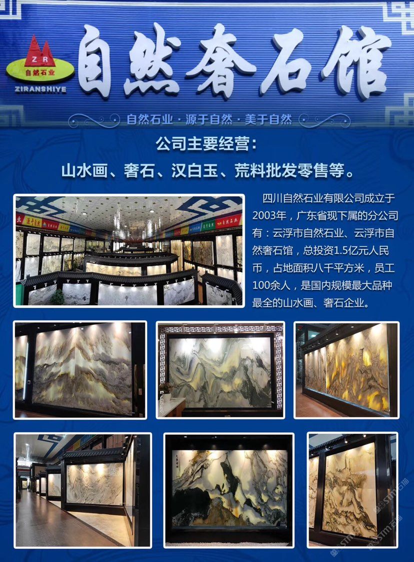 云浮自然石業(yè)有限公司,占地面積4.5萬(wàn)平方米,投資3.5億元,員工160余人,是目前國(guó)內(nèi)規(guī)模 品種多 專(zhuān)業(yè)的一家天然山水畫(huà) 奢石批發(fā)中心!
