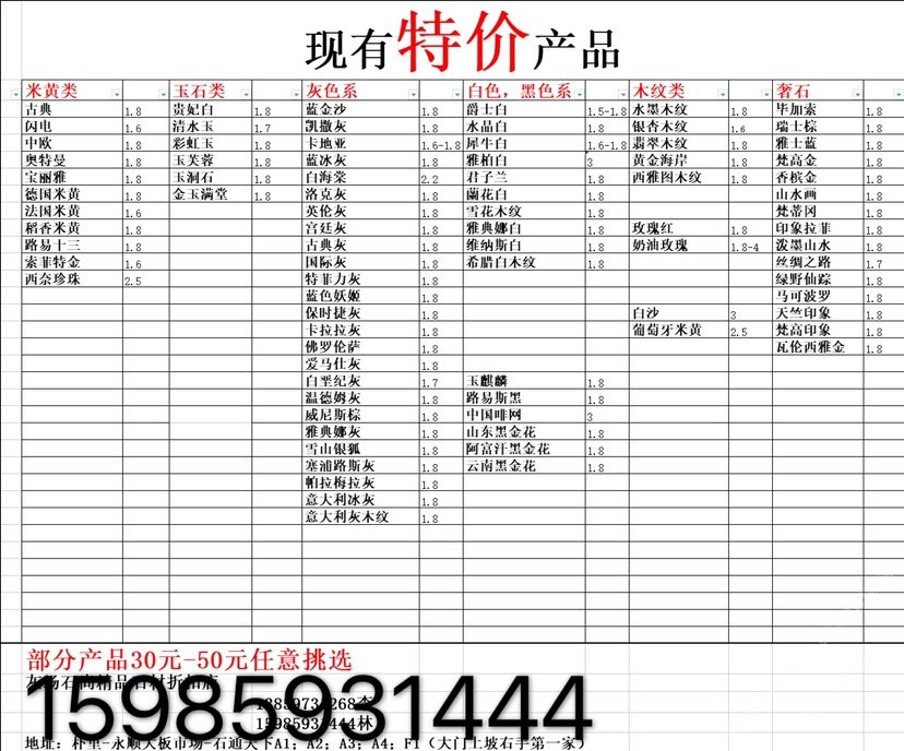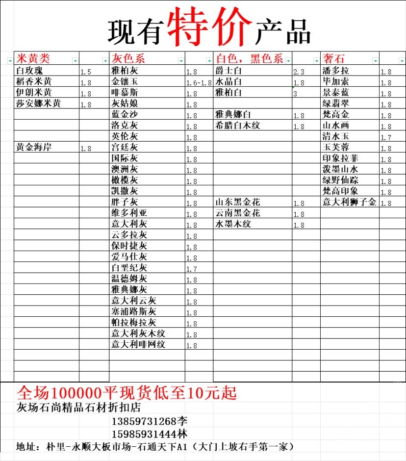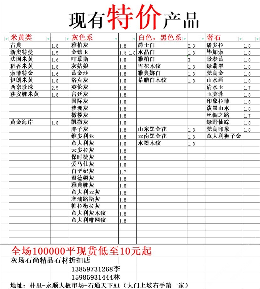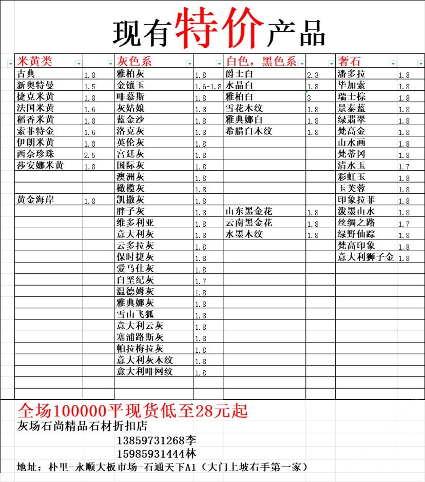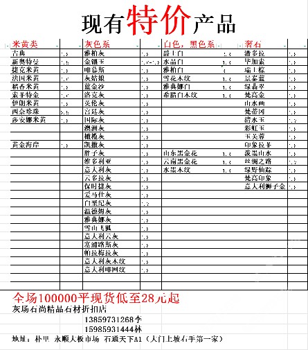現(xiàn)有100000平大板特價(jià)(百來(lái)個(gè)品種),低至30元起