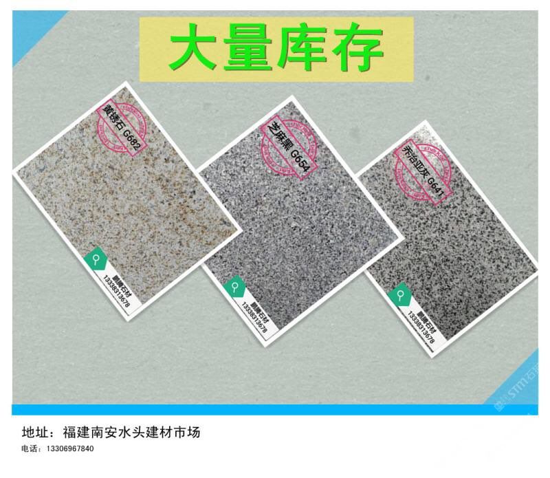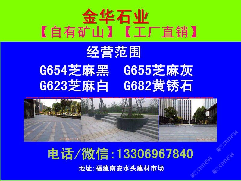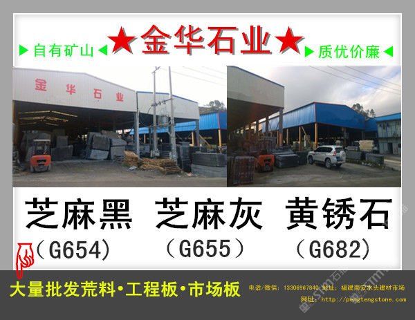 【金華石業(yè)】專門立足于本地豐富的自然資源,擁有成套先進(jìn)的石材設(shè)備,專業(yè)石材加工技術(shù)人員,掌握先進(jìn)的石材加工技術(shù),制定了一整套嚴(yán)格的質(zhì)量控制體系,品質(zhì)管理嚴(yán)格,專業(yè)生產(chǎn)本地石材:G654(芝麻黑),G655(芝麻灰),G682(黃銹石),G603(芝麻白),喬治亞灰,蝦紅、虎皮黃、毛光板,火燒板,踏步板,盲道板,機(jī)刨板,荔枝面,路沿石,蘑菇石,花壇石,花崗巖自然面,建筑用塊石,大型門牌石,墓碑石和橋柱橋欄,圓柱,等各種板材和弧形異型加工。