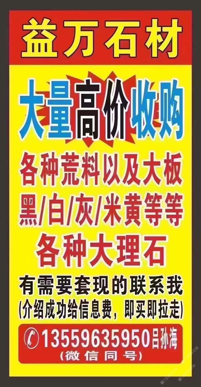 益萬石材 長期大量高價高價,??求購各種,各種荒料荒料,大板,一件起收,5萬平以內(nèi),黑,白,灰,米黃,荒料(奧特曼,白玉蘭,愛馬仕,爵士白,南斯拉夫白,溫德姆,雅士白,云朵拉灰,黑白根,等等各種大理石,有需要套現(xiàn)的聯(lián)系我,介紹成功給信息費,即買即拉走,注意??直接加老板微信13559635950呂孫海(微信同號)@所有人