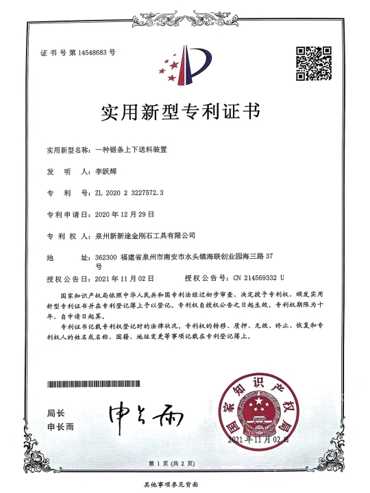 發(fā)布信息: 南安市新途金剛石工具針對目前大理石切割灰料難的現 狀,特別是“愛馬仕灰、瑪雅灰、意大利灰、露娜灰、閃 電灰、灰不灰、羅曼蒂克灰”等帶網格狀花紋、暗裂、孔 洞等切割隱患難加工的荒料,新途工具研發(fā)了一種不掉齒 的排鋸刀頭:“安全切割一切難加工的灰色大理石荒料”。 不單是刀頭鋸條特殊設計,更是結合了十多年的切割經 驗,通過對機臺冷卻水及操作參數、退刀和出料等操作工 藝的改進,大大地提高了灰料切割的安全、高效。真正做 到了不倒料或少倒料。 作為長期穩(wěn)定的合作方,誠懇感謝:東升股份/遠達石材/ 奧力石業(yè)/泉興隆石業(yè)/翰將石業(yè)/中發(fā)大理石/新容石業(yè)/寶 多龍石業(yè)/銳豐源石業(yè)/漢榮石業(yè)/超億石業(yè)/宗藝石業(yè)/尊龍 石業(yè)/正大石業(yè)/銘裕石業(yè)/正方石業(yè)/尚衡石業(yè)/捷成石業(yè)/振 南石/天正/描側石/率硬石上/仏期石/流中石上/灣源 石業(yè)/瑜興石業(yè)/豪闊石業(yè)/興業(yè)石業(yè)/萬華石業(yè)/振興石業(yè)/豪 聞石業(yè)/奧都石業(yè)/永光石業(yè)/明晟石業(yè)/加州(安固)石業(yè) 等等優(yōu)質供應商廠家(排名不分先后) 本公司秉承合作共贏,誠懇敬業(yè)的態(tài)度在石材加工切割領 域深度專研。歡迎廣大群體來領略新途。