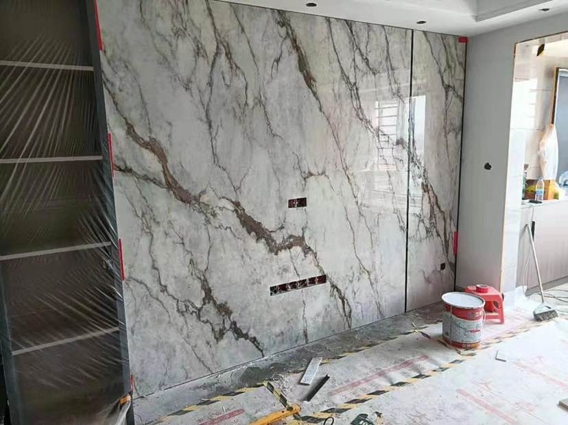 SIBELAN 斯貝納巖板 魚肚金背景墻案例