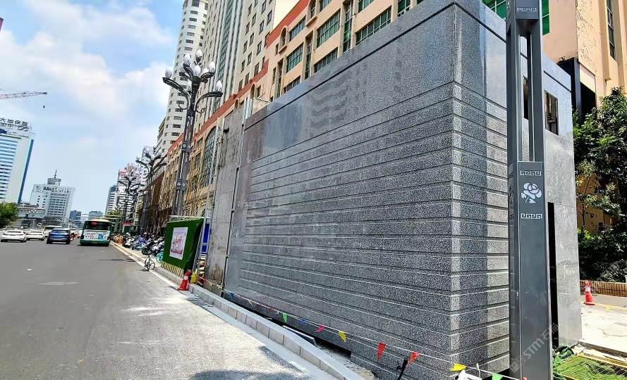發(fā)布信息: 昆明地鐵1號(hào)線(xiàn)西北延線(xiàn)室外出入口,地面石材采用白麻火燒面鋪設(shè),墻面石材灰麻光面鋪設(shè)