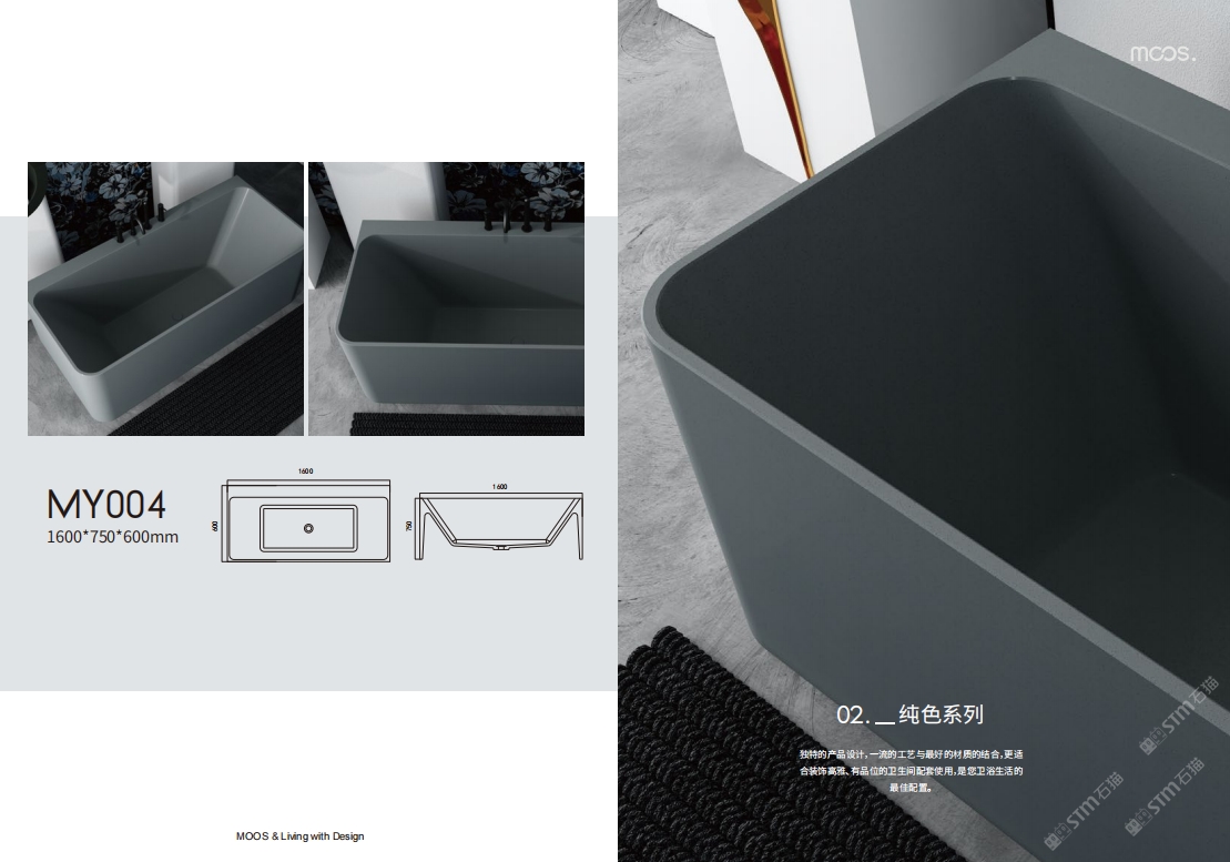 「MOOS魔石衛(wèi)浴」無機水磨石一體化浴缸系列