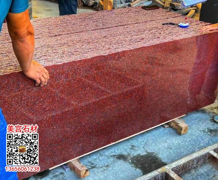 印度紅石材光面超大板紅色花崗巖光板干掛地鋪加州金麻