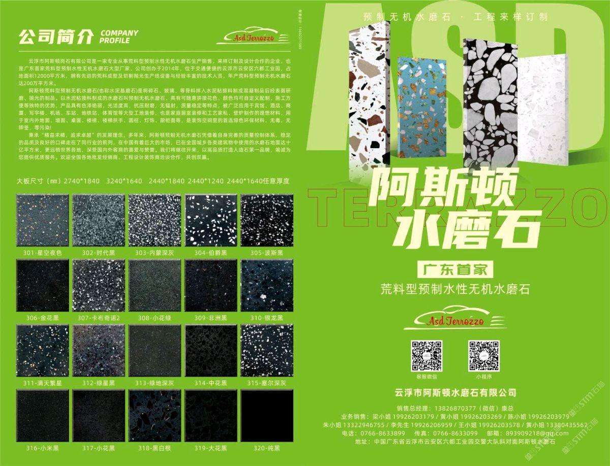 發(fā)布信息: 阿斯頓水磨石大量現(xiàn)貨庫存、款式達400多種,單款現(xiàn)貨超1000平方 滿足急單,也可來樣訂制/設(shè)計,合作共贏!!