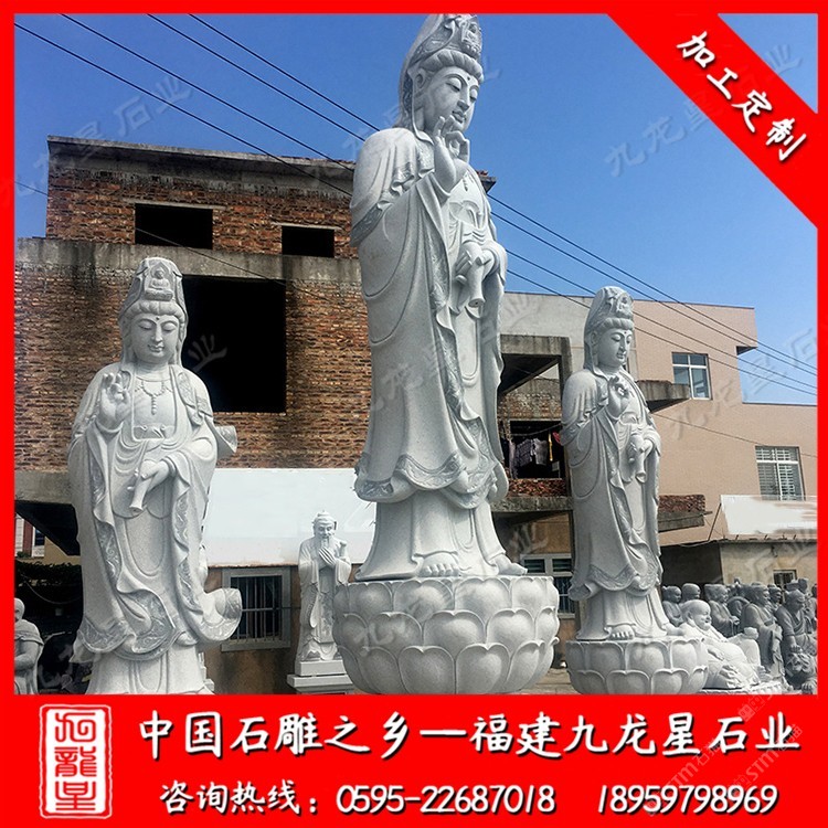 發(fā)布信息: 九龍星石業(yè)是石雕佛像廠家,常年批發(fā)石雕觀音菩薩等佛像,咨詢電話:18959798969 在寺廟,各種石雕佛像是很常見的,小到家家戶戶都會(huì)在家中供奉著石雕小型觀音佛像,大到各種寺廟廣場(chǎng)景區(qū)的大型石雕觀音菩薩,我們所見到的石雕觀音還都有不同的樣子,其實(shí)石雕觀音菩薩的常用形態(tài)一般分為站姿的石雕觀音,坐姿的石雕觀音和臥姿的石雕觀音,這三種觀音所展現(xiàn)的姿態(tài)不同,寓意自然也是不同的,但是是適合在不同的地方進(jìn)行擺放和供人膜拜。