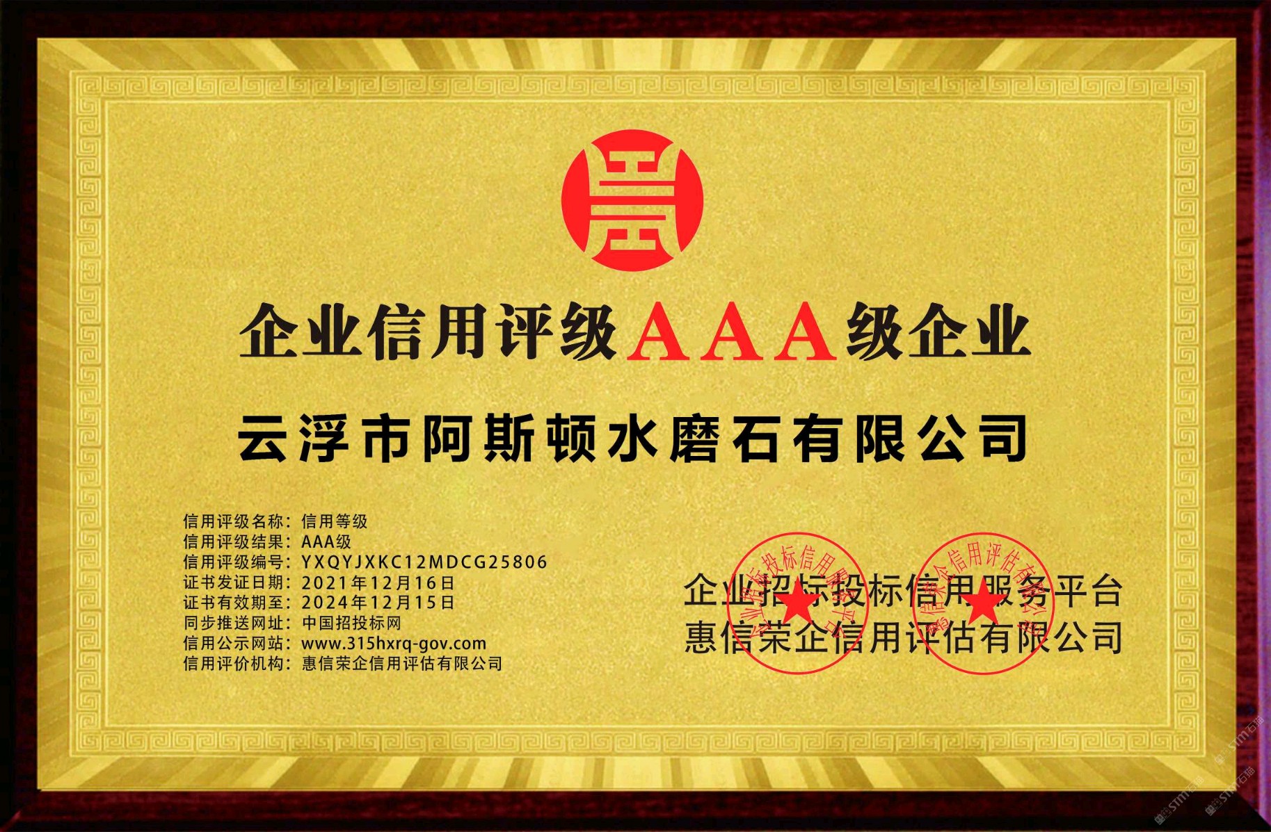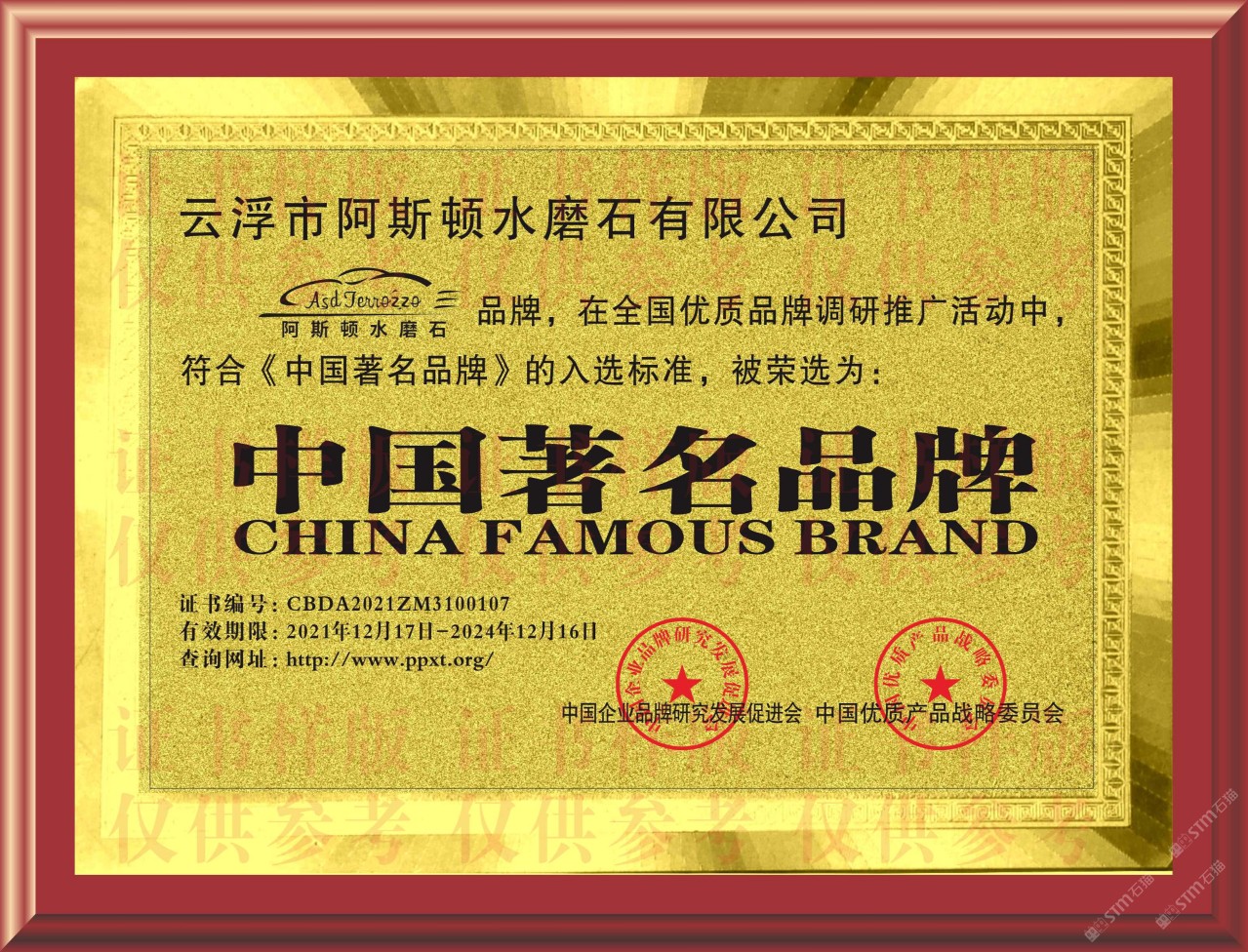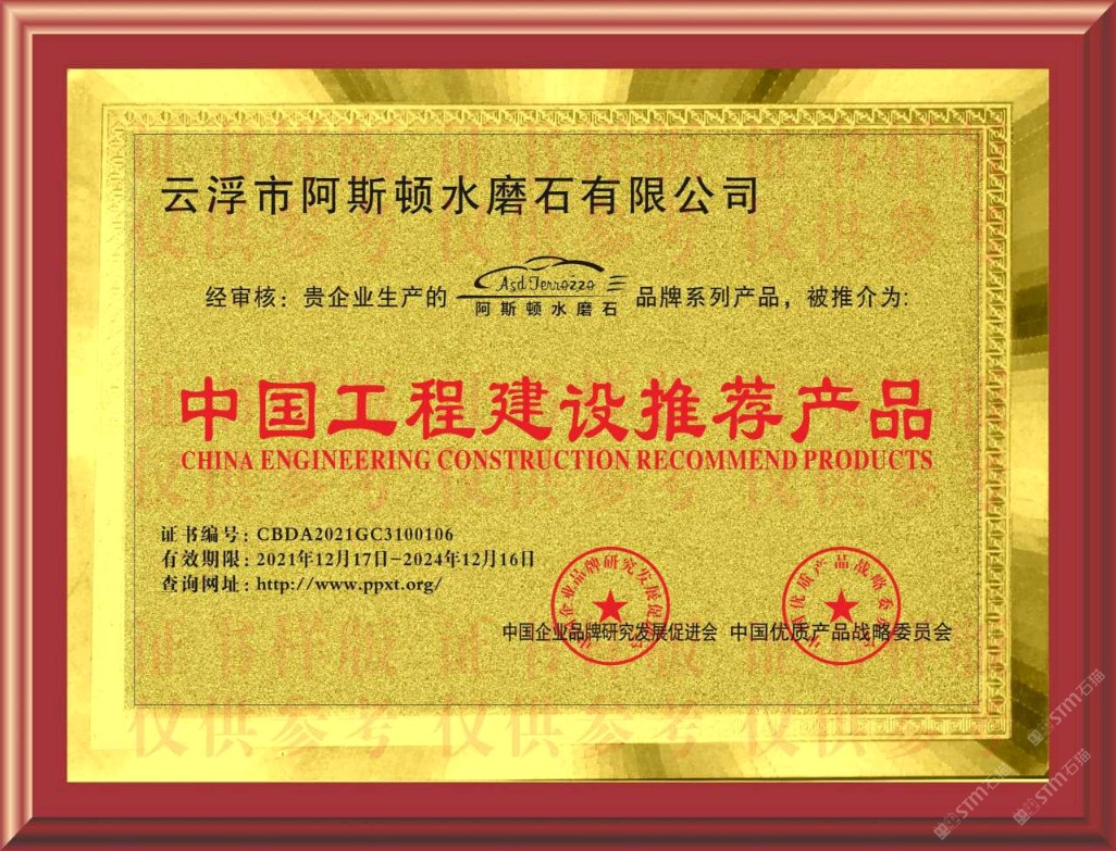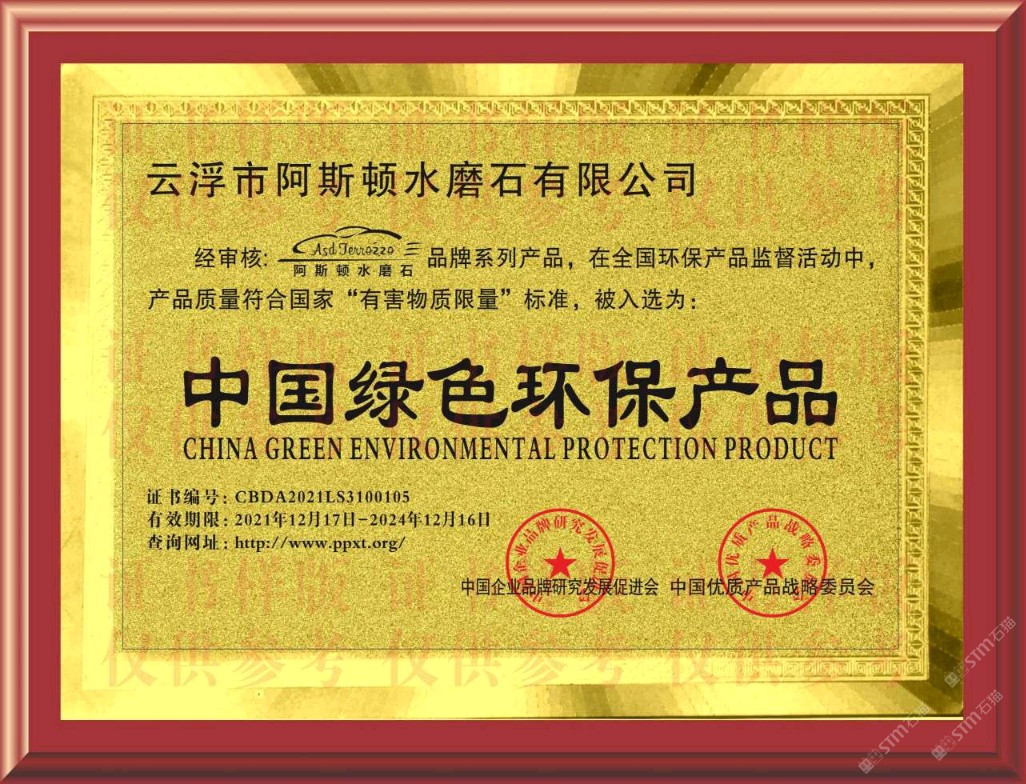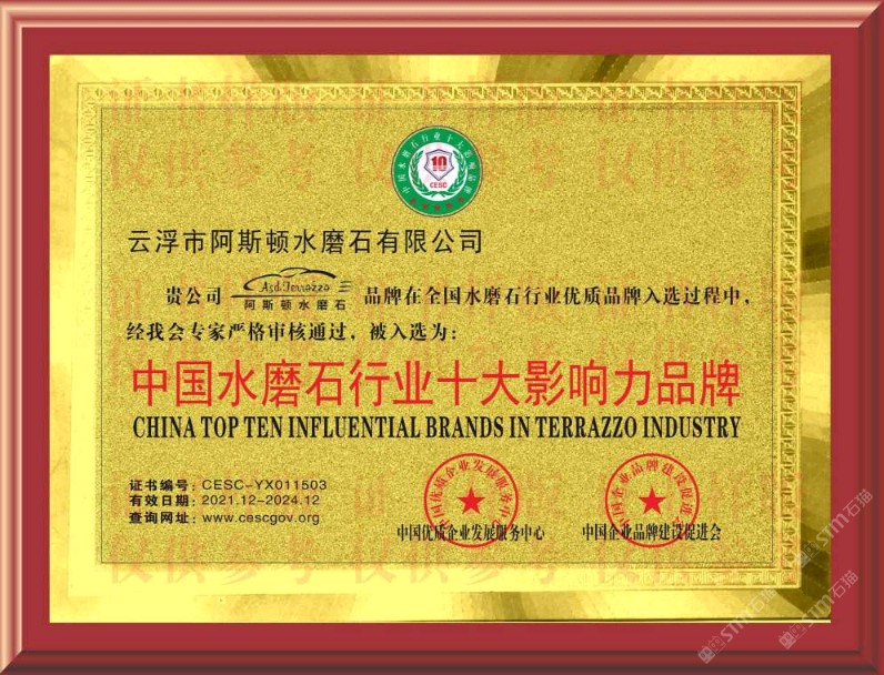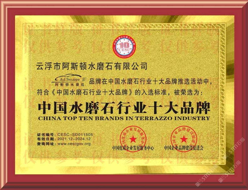 重磅重磅!阿斯頓水磨石榮譽(yù)證書出爐啦!