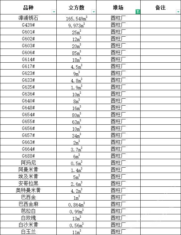 發(fā)布信息: 鴻源圓柱 ,大量荒料處理, 聯(lián)系電話:13506960182 漳浦銹石、G439#、G601#、G602#、G603#、G606#、G614#、G617#、G623#、G633#、G635#、G636#、G640#、G648#、G654#、G655#、G656#、G657#G663#、G664#、G688#、阿瑪尼、阿曼米黃、埃及米黃、安哥拉黑、奧特曼米黃、巴西金、巴西金麻、芭拉白、白玫瑰、白沙米黃、白玉蘭