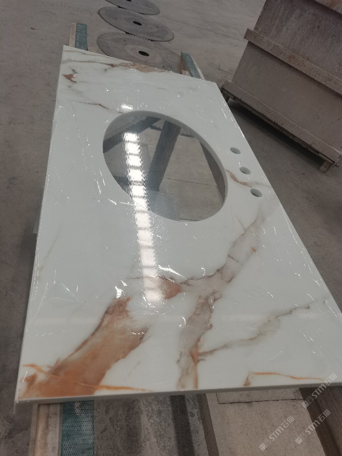 工程圓柱純白魚肚白微晶石臺面13489877536