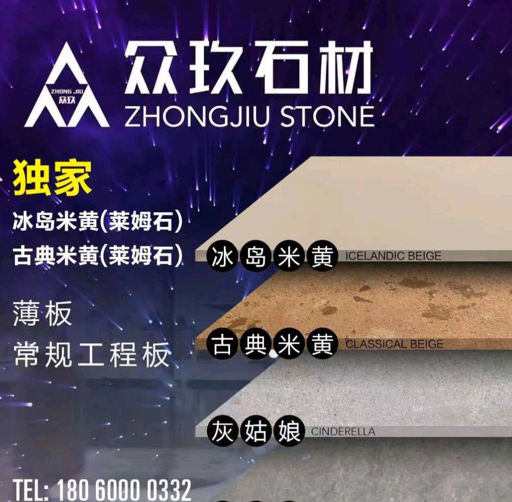 眾玖石業(yè):萊姆石 古典米黃 冰島米黃 灰姑娘