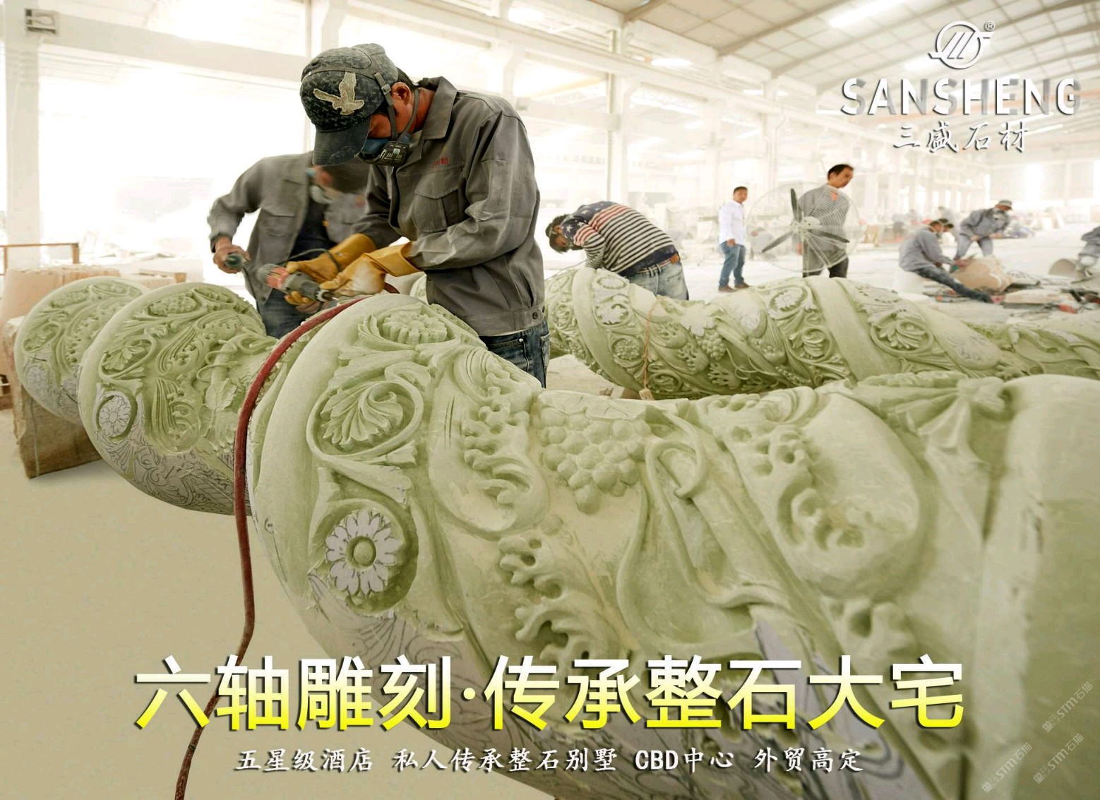 發(fā)布信息: 聯(lián)系:13489555666 黃 三盛集團丨三盛圓柱主營:魚肚白、中花白、雅士白、大花白、卡拉拉白、雪花白、南斯拉夫白、細花白、爵士白品種的圓柱、弧形板、羅馬柱、雕刻、線條、旋轉(zhuǎn)樓梯、吧臺水景沙盤、整棟傳承大宅、別墅,來料智能掃描加工。