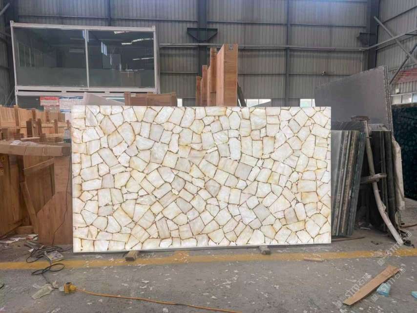 白水晶金箔款大板 定制半寶石板材,透光石材,奢石