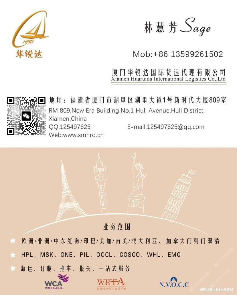 發(fā)布信息: 廈門華銳達(dá)國(guó)際物流專業(yè)石材國(guó)際運(yùn)輸服務(wù),全面覆蓋歐洲、非洲、中東、印巴(印度/巴基斯坦)、南美、澳大利亞及中亞五國(guó)等全球主要市場(chǎng),確保您的石材安全、高效抵達(dá)目的地 歡迎詢價(jià)13599261502