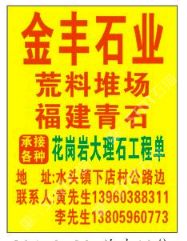 發(fā)布信息: 《金豐石業(yè)》 水頭的福建青石出售花崗巖荒料 自有礦山 主營(yíng):雕刻 欄桿 光面 荔枝面 燒面 磨菇面 自然面 小方塊 路沿石 承接:各種花崗巖大理石工程單 地址:水頭鎮(zhèn)下店村公路邊 聯(lián)系人黃先生13960388311