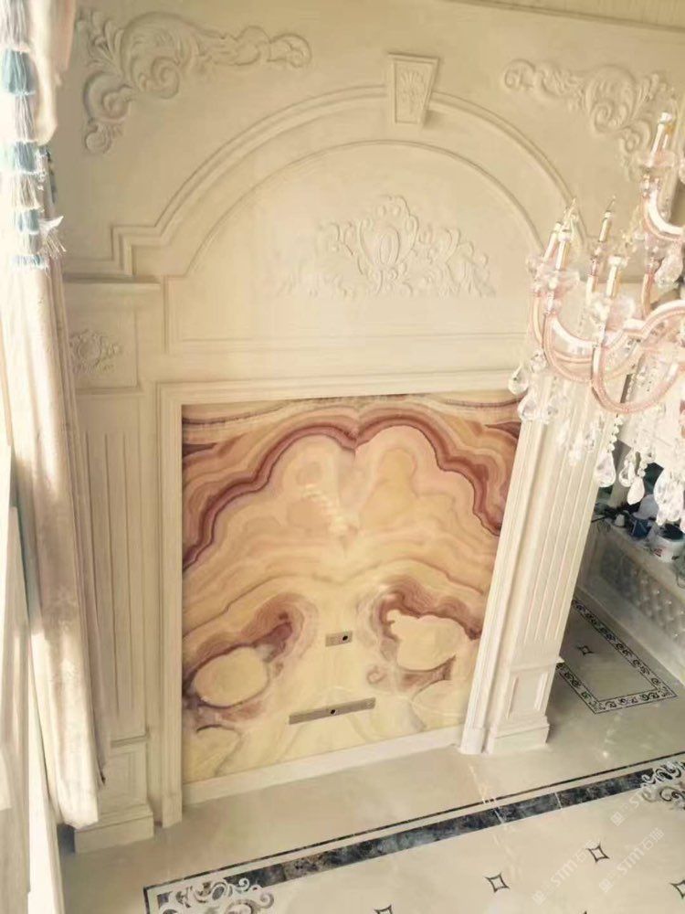 芙蓉玉透光玉石大板背景墻成品定制