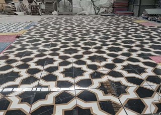 康利德-伊朗老礦云朵拉灰 雅士白 勞侖黑金水刀拼花