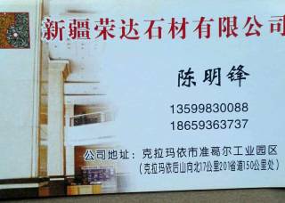 新疆托里銳輝石材開發(fā)有限公司主營產(chǎn)品:菊花黃,鉆石金麻,安溪紅G3535(火燒板),菊花黃4,天山翡翠企業(yè)地址:新疆克拉瑪依克拉瑪依市準(zhǔn)噶爾石材工業(yè)區(qū)