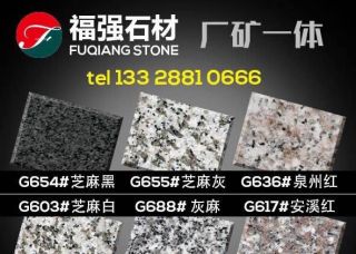 長泰縣福強(qiáng)石材廠主營產(chǎn)品:芝麻黑,芝麻白,芝麻白(火燒面),芝麻白(荔枝面),芝麻灰,芝麻灰1,芝麻灰2,G654,G654芝麻灰,G654(自然面),新G654,新G654(1),芝麻黑654(火燒面),芝麻黑654,新617,G617,新G623,G688,漳浦紅G648,G655,G655 (1),G655(荔枝面),G655(火燒面)1,新G655,長泰G655,芝麻灰(江西),芝麻灰655(火燒面),喬治亞灰,福建灰麻,福建灰麻(亞光面),福建芝麻黑,喬治亞灰(深色),灰麻1,金點灰麻2,金點灰麻1,新芝麻黑(火燒面),新芝麻黑(光面),芝麻黑(荔枝面),芝麻黑654(新礦),G655(漳州礦),芝麻白(603),芝麻白G603,G603,泉州紅,G636,G636(福建礦),G606(礱石),G606(正礦),黃銹石,柬埔寨芝麻黑企業(yè)地址:福建泉州南安市石井鎮(zhèn)林柄村江鋒石材廠